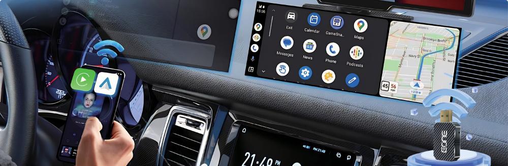 ‏🎉 EONE Wireless CarPlay & Android Auto Box – 2 in 1