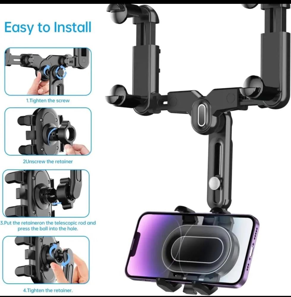 حامل هاتف بمرآة الرؤية الخلفية للسيارة 360 ° - متوافق مع الهواتف وأجهزة GPS