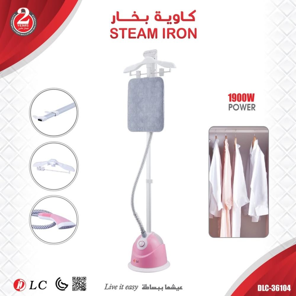* قوة وأداء عالي: بقوة 1900 واط، تسخن الكاوية بسرعة وتنتج بخارًا قويًا وكثيفًا يخترق الأقمشة ويزيل التجاعيد العنيدة بفعالية.