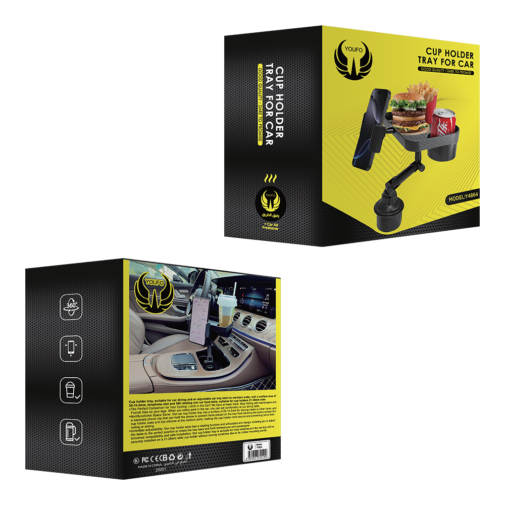 اجعل رحلاتك بالسيارة أكثر راحة وتنظيمًا مع حامل الأكواب وصينية الطعام للسيارة من YOUFO. تصميم ذكي يوفر لك مساحة مثالية لوضع وجباتك، مشروباتك، وهاتفك المحمول في متناول يدك. يتم تثبيته بسهولة في حامل الأكواب داخل السيارة، ويتميز بذراع متحركة وقابلة للتعديل لتناسب مختلف الزوايا والمساحات. مثالي للسفر، القيادة اليومية، أو التنقل لمسافات طويلة.