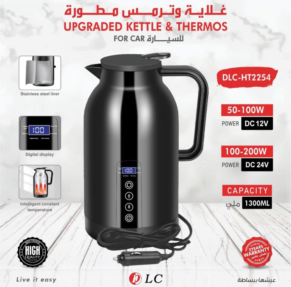 غلاية مياه كهربائية وترمس حراري مدمج ومطور، مصمم خصيصًا ليناسب احتياجات السائقين والمسافرين. يتميز بتصميم أنيق بلون أسود وسعة كبيرة لتوفير المشروبات الساخنة أثناء التنقل.