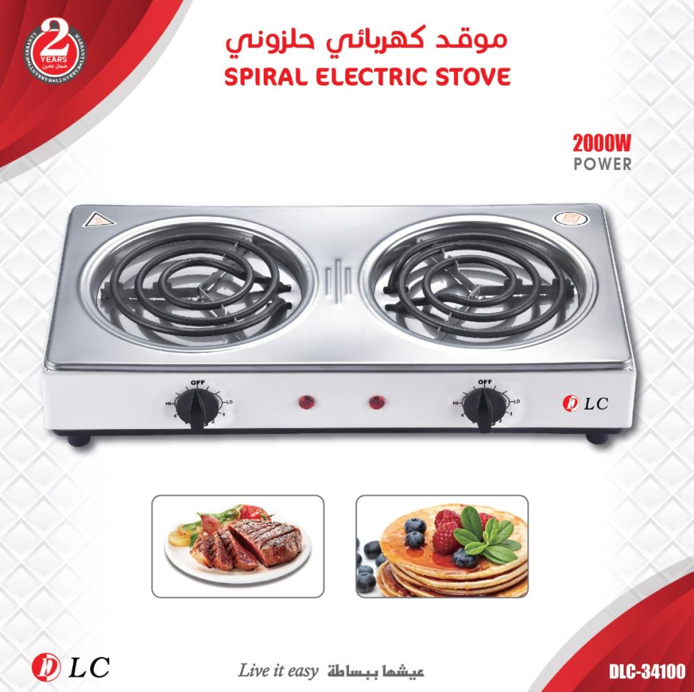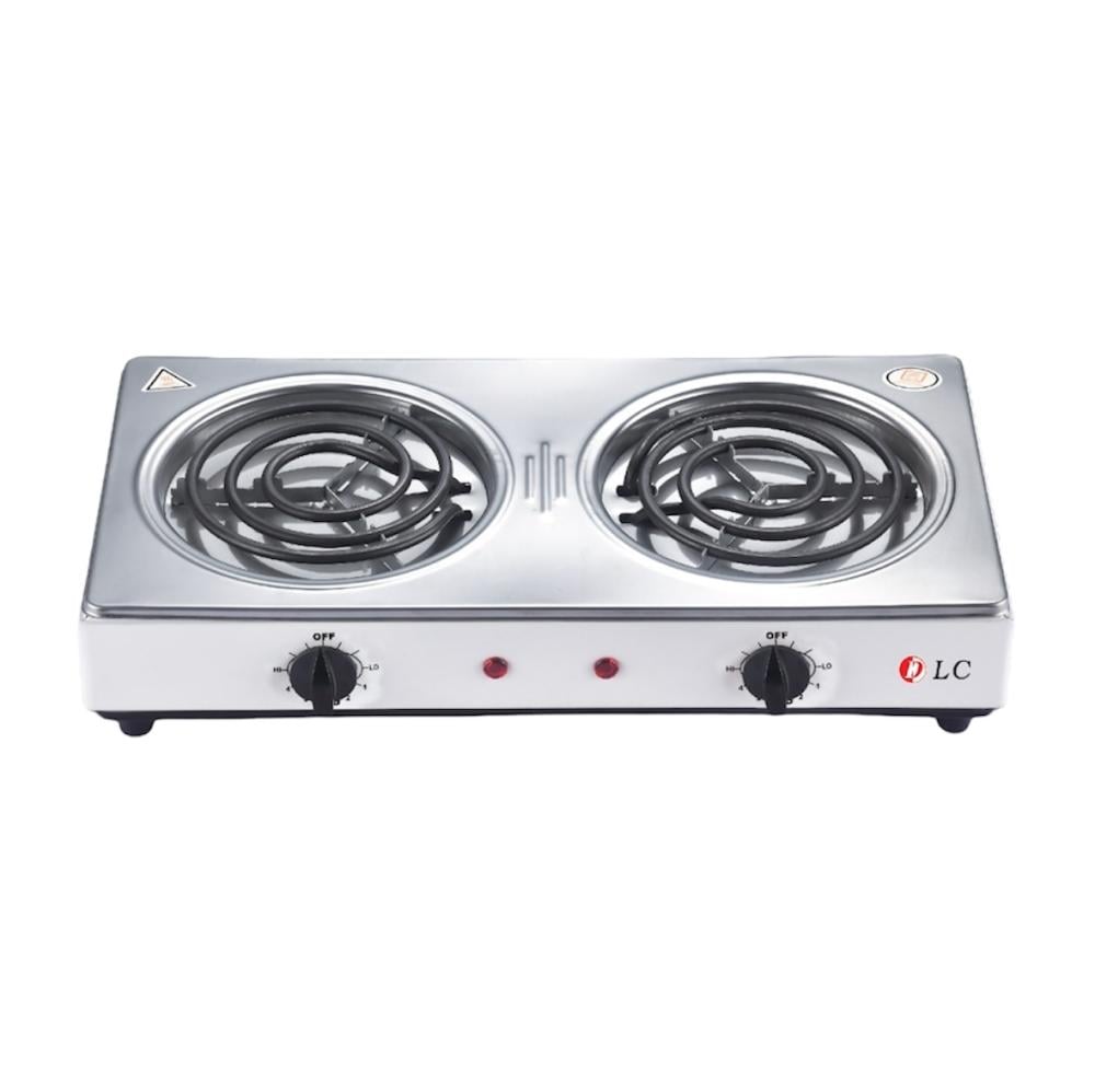 موقد كهربائي حلزوني مزدوج من DLC بتصميم عملي ومدمج، مثالي للمساحات الصغيرة والاستخدامات الإضافية. يتميز بهيكل معدني متين ويحتوي على عينين تسخين حلزونيتين (كويل) لطهي متزامن. كل عين مزودة بمفتاح تحكم مستقل لضبط درجة الحرارة ومؤشر ضوئي لحالة التشغيل.