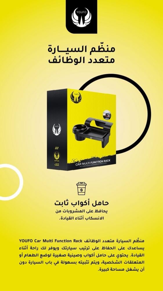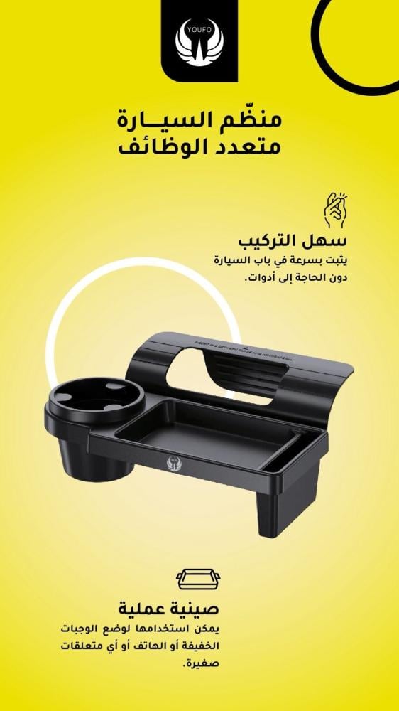منظّم السيارة متعدد الوظائف من YOUFO حل عملي يجمع بين حامل أكواب ثابت وصينية صغيرة متعددة الاستخدامات، يثبت بسهولة في باب السيارة بدون ما ياخذ مساحة، سواء كنت تحتاج مكان لمشروباتك، وجباتك الخفيفة، أو أغراضك اليومية… هذا المنظّم هو رفيقك المثالي للقيادة.
