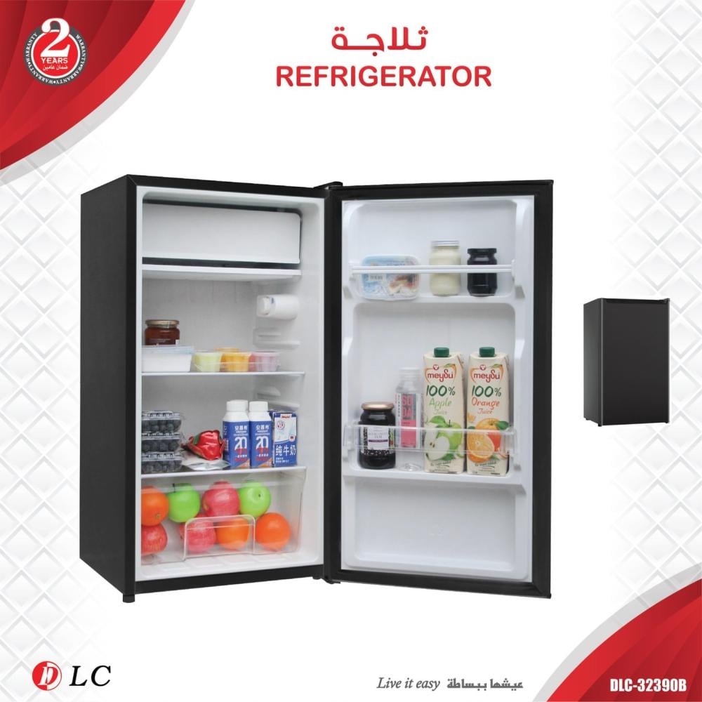 ثلاجة صغيرة الحجم تتميز بتصميم مدمج وأنيق بلون أسود ، صغيرة ومناسبة للاستخدام في الأماكن ذات المساحة المحدودة ، تحتوي على رفوف داخلية قابلة للتعديل ، درج سفلي لتخزين الفواكه والخضروات ، أماكن تخزين على باب الثلاجة لوضع المشروبات والعبوات ،فصل علوي (فريزر) صغير لتبريد وتجميد بعض الأطعمة.