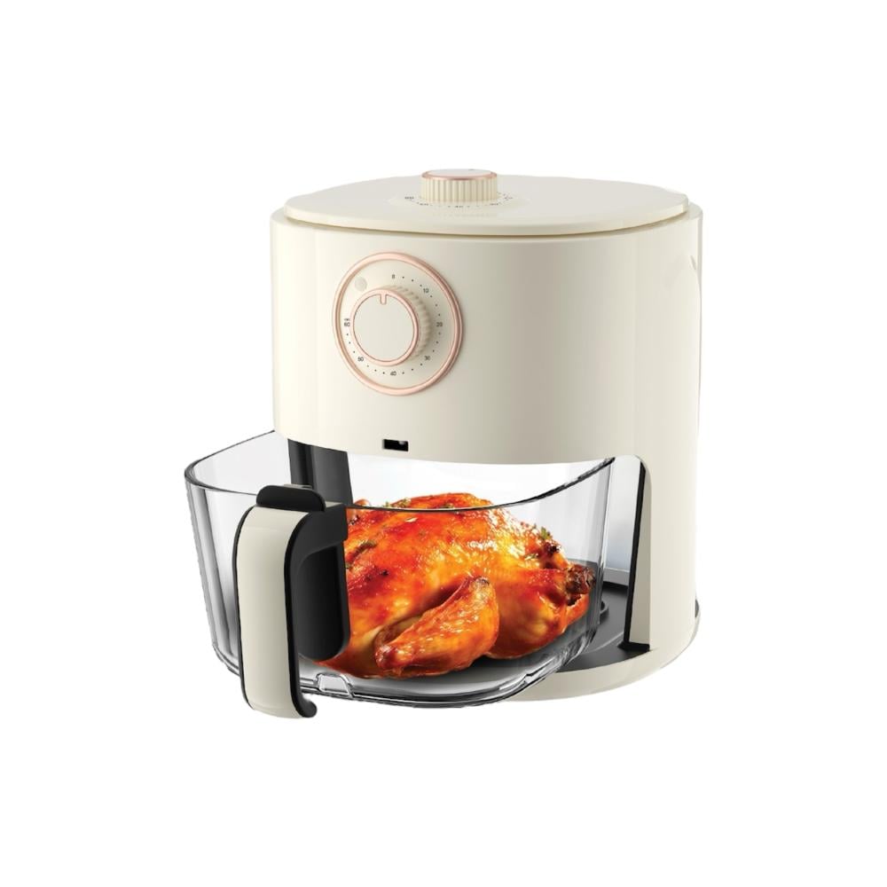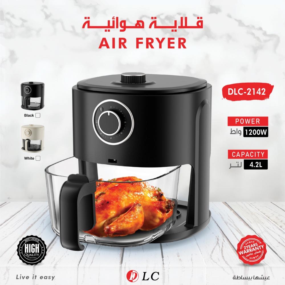 قلاية هوائية بتصميم عصري وأنيق، متوفرة باللونين الأسود والأبيض، مما يمنحها لمسة جمالية تتناسب مع ديكورات المطابخ المختلفة. تتميز هذه القلاية بسعة كبيرة ونافذة شفافة تسمح بمراقبة عملية الطهي دون الحاجة لفتح الدرج، مما يجعلها خياراً مثالياً لتحضير وجبات صحية ولذيذة بكميات وفيرة.