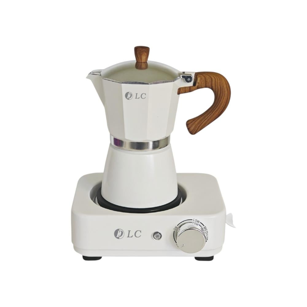 ماكينة صنع قهوة أنيقة وعصرية، تجمع بين التصميم الكلاسيكي لماكينة الموكا والوظائف الحديثة ، مع مقابض خشبية أنيقة تضفي لمسة من الدفء والجمال. هذه الماكينة مثالية لعشاق القهوة الذين يبحثون عن سهولة الاستخدام مع الحفاظ على المذاق الغني والتقليدي.