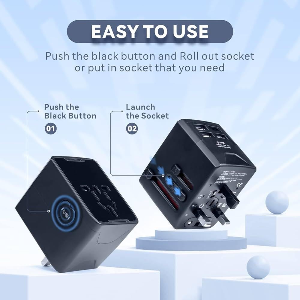 - أربعة منافذ : يحتوي على 3 منافذ USB ومنفذ PD، مما يتيح لك شحن أجهزتك المتعددة في نفس الوقت دون الحاجة إلى تبديل الكابلات.