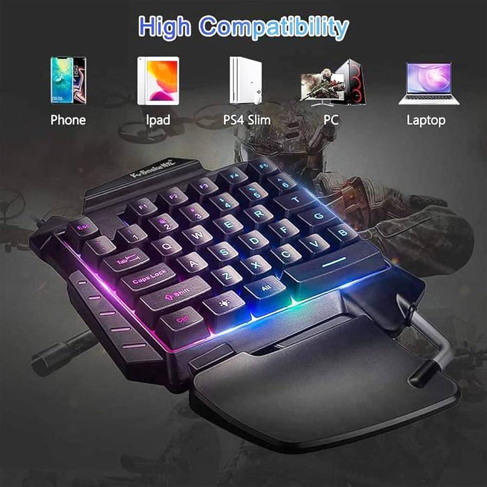 لوحة مفاتيح للألعاب محمولة بيد واحدة ، RGB .
