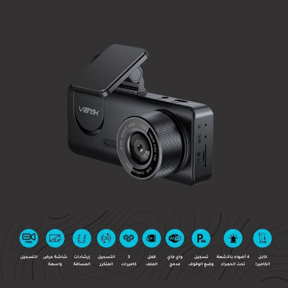 كاميرا VERTIK Full Scope 3 in 1 هي الحل الشامل لمراقبة الطريق داخل وخارج سيارتك، حيث توفر تسجيلًا عالي الجودة ورؤية شاملة من الأمام، الخلف، والداخل، وتعمل بفعالية حتى في الظروف الصعبة، ما يجعلها رفيقًا موثوقًا لسلامتك وأمانك أثناء القيادة.